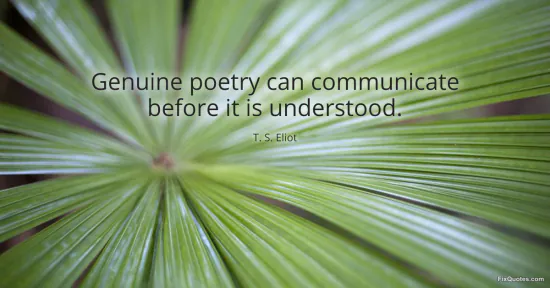 Eliot, T. S. (2026, January 15). Genuine poetry can communicate before it is understood. FixQuotes. https://fixquotes.com/quotes/genuine-poetry-can-communicate-before-it-is-22303/