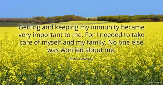 Lewinsky, Monica. "Getting and keeping my immunity became very important to me. For I needed to take care of myself and my family. No one else was worried about me." FixQuotes. January 15, 2026. https://fixquotes.com/quotes/getting-and-keeping-my-immunity-became-very-158963/.