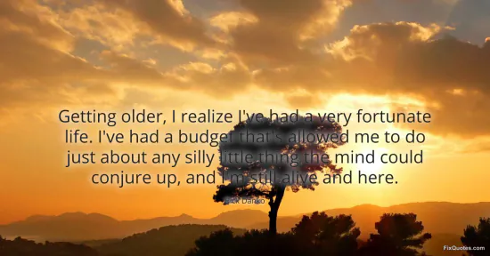 "Getting older, I realize I've had a very fortunate life. I've had a budget that's allowed me to do just about any silly little thing the mind could conjure up, and I'm still alive and here." FixQuotes, 16 Jan. 2026, https://fixquotes.com/quotes/getting-older-i-realize-ive-had-a-very-fortunate-101636/. Accessed 12 Feb. 2026.