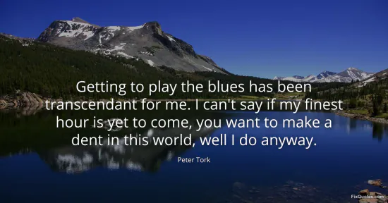 Tork, Peter. "Getting to play the blues has been transcendant for me. I can't say if my finest hour is yet to come, you want to make a dent in this world, well I do anyway." FixQuotes. January 15, 2026. https://fixquotes.com/quotes/getting-to-play-the-blues-has-been-transcendant-85602/.