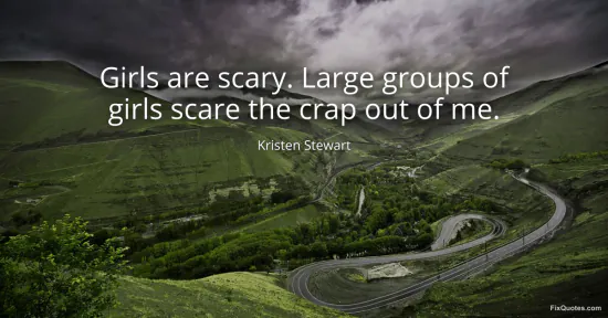 Stewart, Kristen. (2026, January 16). Girls are scary. Large groups of girls scare the crap out of me. FixQuotes. https://fixquotes.com/quotes/girls-are-scary-large-groups-of-girls-scare-the-126544/