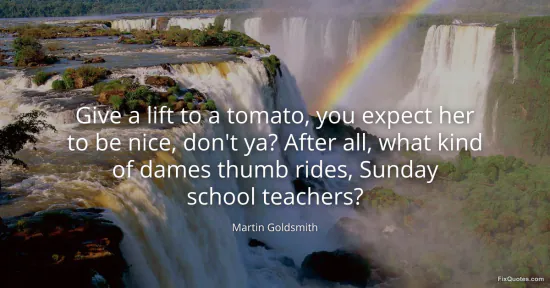 Goldsmith, Martin. "Give a lift to a tomato, you expect her to be nice, don't ya? After all, what kind of dames thumb rides, Sunday school teachers?" FixQuotes. January 16, 2026. https://fixquotes.com/quotes/give-a-lift-to-a-tomato-you-expect-her-to-be-nice-114519/.