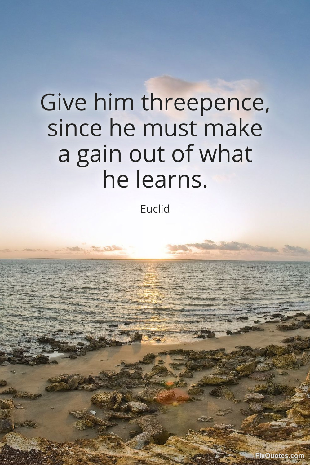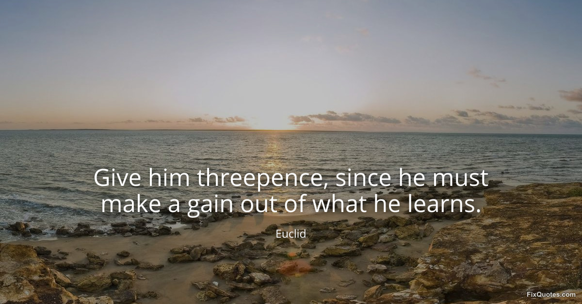 Euclid. (2026, February 14). Give him threepence, since he must make a gain out of what he learns. FixQuotes. https://fixquotes.com/quotes/give-him-threepence-since-he-must-make-a-gain-out-185293/