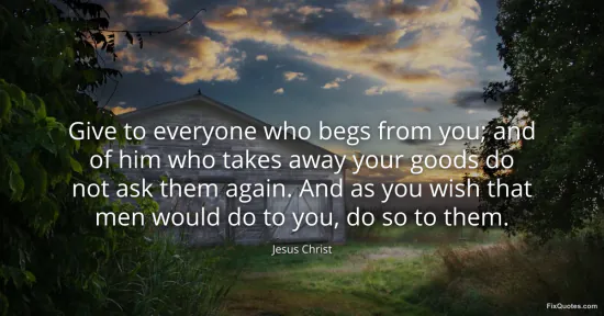 Christ, Jesus. "Give to everyone who begs from you; and of him who takes away your goods do not ask them again. And as you wish that men would do to you, do so to them." FixQuotes. February 18, 2026. https://fixquotes.com/quotes/give-to-everyone-who-begs-from-you-and-of-him-who-185630/.