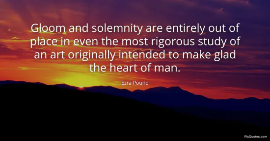 Pound, Ezra. (2026, January 15). Gloom and solemnity are entirely out of place in even the most rigorous study of an art originally intended to make glad the heart of man. FixQuotes. https://fixquotes.com/quotes/gloom-and-solemnity-are-entirely-out-of-place-in-61326/