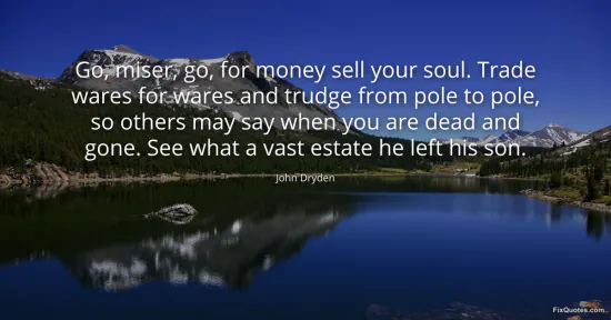 Dryden, John. (2026, February 16). Go, miser, go, for money sell your soul. Trade wares for wares and trudge from pole to pole, so others may say when you are dead and gone. See what a vast estate he left his son. FixQuotes. https://fixquotes.com/quotes/go-miser-go-for-money-sell-your-soul-trade-wares-146584/