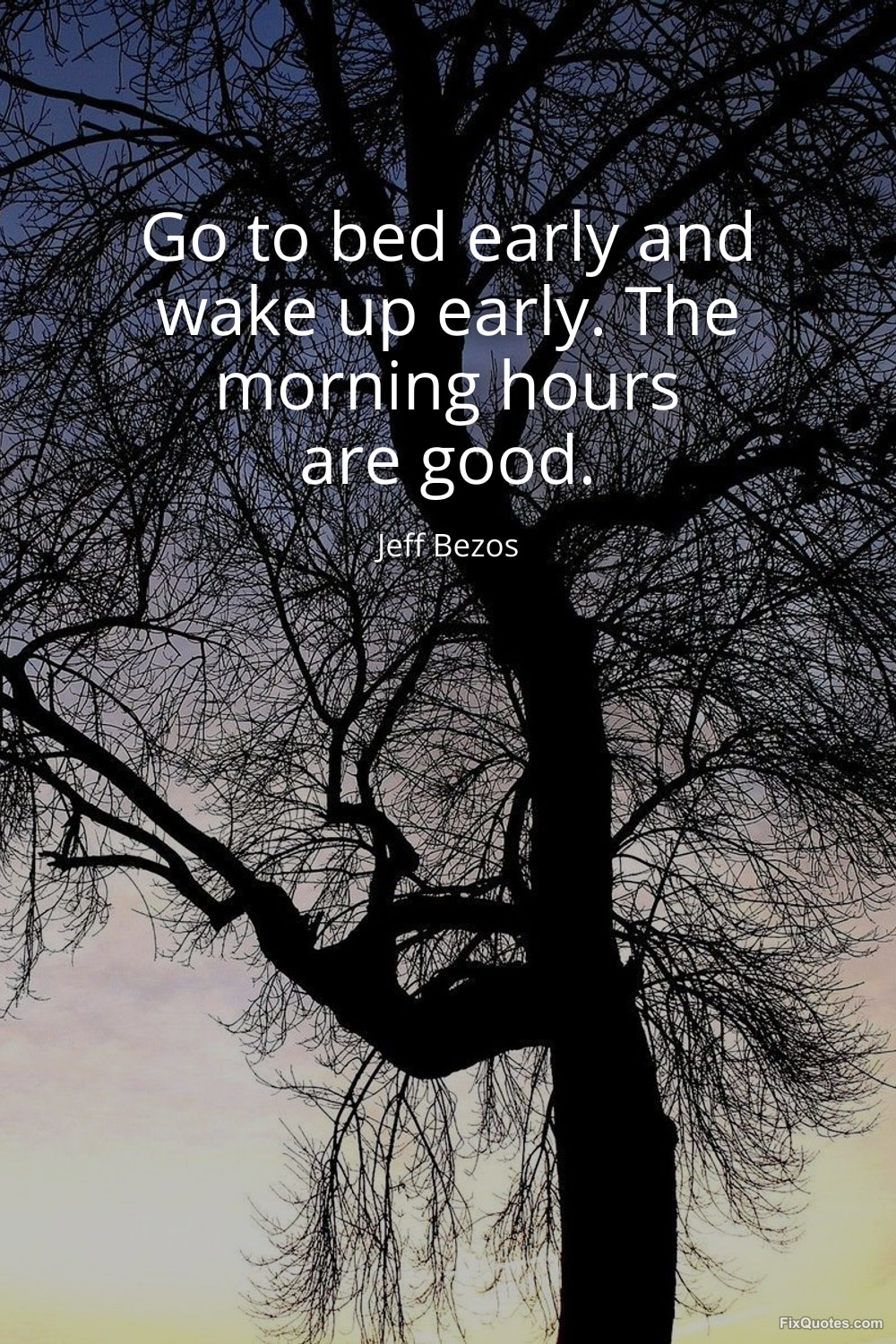 Bezos, Jeff. "Go to bed early and wake up early. The morning hours are good." FixQuotes. March 25, 2026. https://fixquotes.com/quotes/go-to-bed-early-and-wake-up-early-the-morning-186339/.