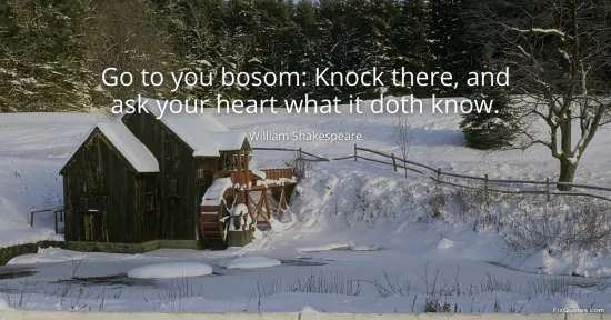 Shakespeare, William. "Go to you bosom: Knock there, and ask your heart what it doth know." FixQuotes. January 15, 2026. https://fixquotes.com/quotes/go-to-you-bosom-knock-there-and-ask-your-heart-42181/.