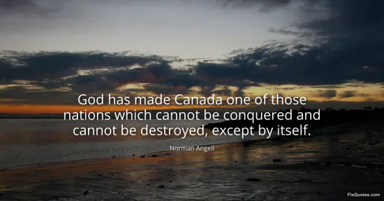 Angell, Norman. (n.d.). God has made Canada one of those nations which cannot be conquered and cannot be destroyed, except by itself. FixQuotes. https://fixquotes.com/quotes/god-has-made-canada-one-of-those-nations-which-153105/