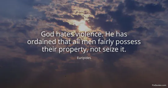 Euripides. "God hates violence. He has ordained that all men fairly possess their property, not seize it." FixQuotes. January 15, 2026. https://fixquotes.com/quotes/god-hates-violence-he-has-ordained-that-all-men-145986/.