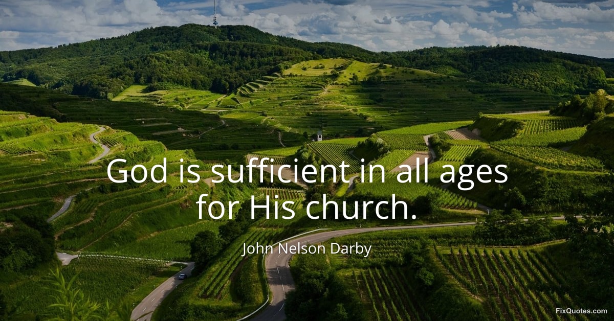 Darby, John Nelson. (2026, January 18). God is sufficient in all ages for His church. FixQuotes. https://fixquotes.com/quotes/god-is-sufficient-in-all-ages-for-his-church-10450/
