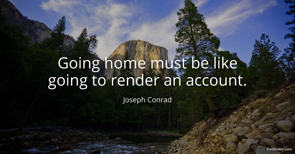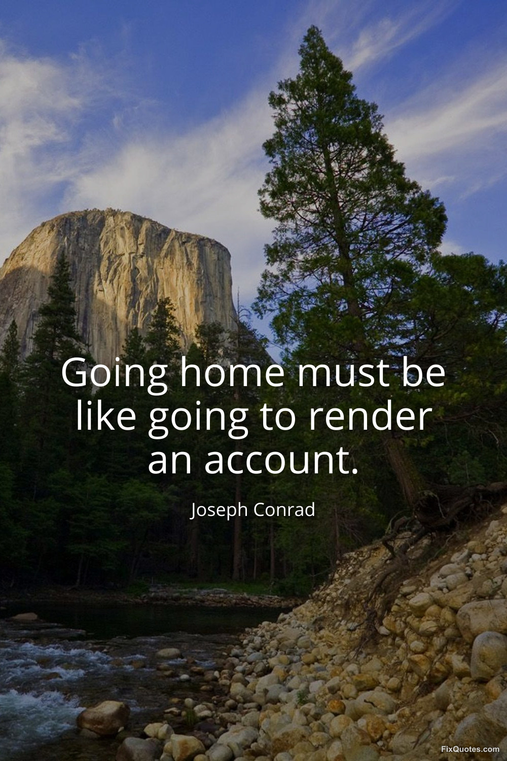 Conrad, Joseph. (2026, March 26). Going home must be like going to render an account. FixQuotes. https://fixquotes.com/quotes/going-home-must-be-like-going-to-render-an-account-96318/