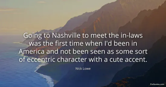 Lowe, Nick. "Going to Nashville to meet the in-laws was the first time when I'd been in America and not been seen as some sort of eccentric character with a cute accent." FixQuotes. January 15, 2026. https://fixquotes.com/quotes/going-to-nashville-to-meet-the-in-laws-was-the-160617/.