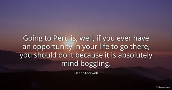 Stockwell, Dean. (2026, January 14). Going to Peru is, well, if you ever have an opportunity in your life to go there, you should do it because it is absolutely mind boggling. FixQuotes. https://fixquotes.com/quotes/going-to-peru-is-well-if-you-ever-have-an-158102/