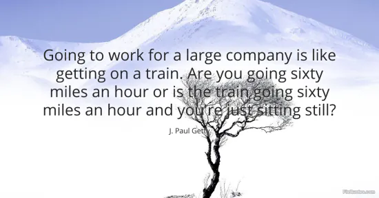 Getty, J. Paul. "Going to work for a large company is like getting on a train. Are you going sixty miles an hour or is the train going sixty miles an hour and you're just sitting still?" FixQuotes. January 15, 2026. https://fixquotes.com/quotes/going-to-work-for-a-large-company-is-like-getting-127904/.