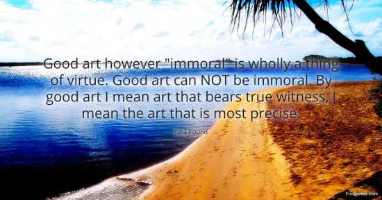 Pound, Ezra. (2026, January 15). Good art however "immoral" is wholly a thing of virtue. Good art can NOT be immoral. By good art I mean art that bears true witness, I mean the art that is most precise. FixQuotes. https://fixquotes.com/quotes/good-art-however-immoral-is-wholly-a-thing-of-146263/