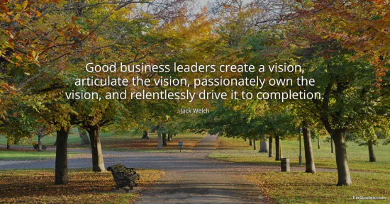 Welch, Jack. (2026, January 17). Good business leaders create a vision, articulate the vision, passionately own the vision, and relentlessly drive it to completion. FixQuotes. https://fixquotes.com/quotes/good-business-leaders-create-a-vision-articulate-31696/
