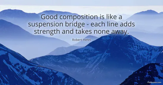 Henri, Robert. (2026, January 16). Good composition is like a suspension bridge - each line adds strength and takes none away. FixQuotes. https://fixquotes.com/quotes/good-composition-is-like-a-suspension-bridge--109987/