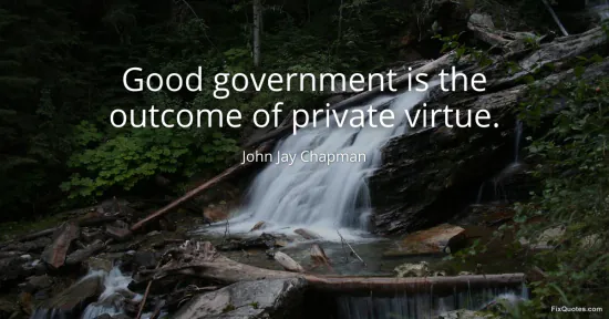 Chapman, John Jay. "Good government is the outcome of private virtue." FixQuotes. January 16, 2026. https://fixquotes.com/quotes/good-government-is-the-outcome-of-private-virtue-92784/.