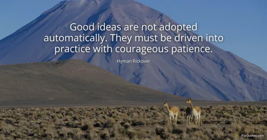 Rickover, Hyman. "Good ideas are not adopted automatically. They must be driven into practice with courageous patience." FixQuotes. January 17, 2026. https://fixquotes.com/quotes/good-ideas-are-not-adopted-automatically-they-55503/.