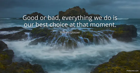 Glasser, William. "Good or bad, everything we do is our best choice at that moment." FixQuotes. January 18, 2026. https://fixquotes.com/quotes/good-or-bad-everything-we-do-is-our-best-choice-2936/.