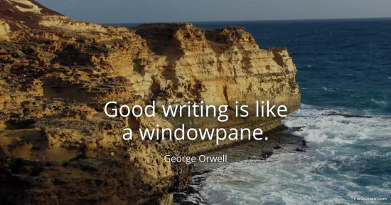 Orwell, George. (2026, January 17). Good writing is like a windowpane. FixQuotes. https://fixquotes.com/quotes/good-writing-is-like-a-windowpane-28279/