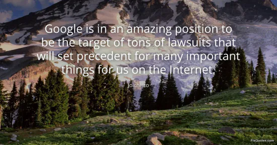 Ito, Joichi. (2026, January 17). Google is in an amazing position to be the target of tons of lawsuits that will set precedent for many important things for us on the Internet. FixQuotes. https://fixquotes.com/quotes/google-is-in-an-amazing-position-to-be-the-target-70030/