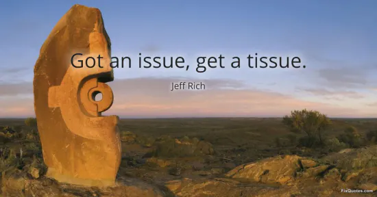 Rich, Jeff. "Got an issue, get a tissue." FixQuotes. January 18, 2026. https://fixquotes.com/quotes/got-an-issue-get-a-tissue-21416/.
