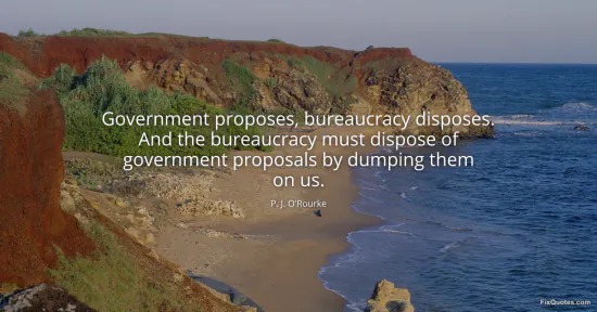 O'Rourke, P. J. "Government proposes, bureaucracy disposes. And the bureaucracy must dispose of government proposals by dumping them on us." FixQuotes. January 15, 2026. https://fixquotes.com/quotes/government-proposes-bureaucracy-disposes-and-the-1192/.