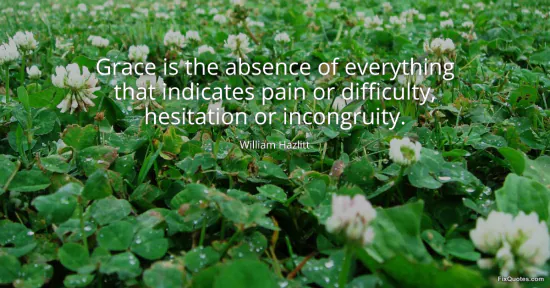 Hazlitt, William. (2026, January 17). Grace is the absence of everything that indicates pain or difficulty, hesitation or incongruity. FixQuotes. https://fixquotes.com/quotes/grace-is-the-absence-of-everything-that-indicates-78915/