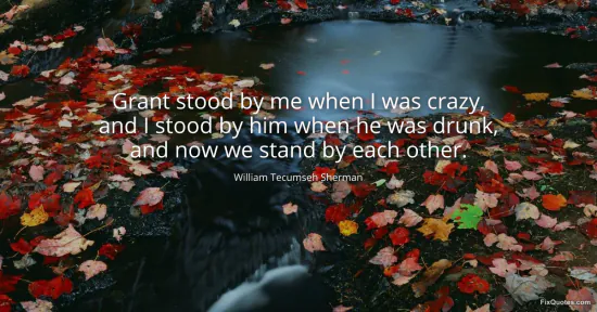 Sherman, William Tecumseh. "Grant stood by me when I was crazy, and I stood by him when he was drunk, and now we stand by each other." FixQuotes. January 14, 2026. https://fixquotes.com/quotes/grant-stood-by-me-when-i-was-crazy-and-i-stood-by-6533/.
