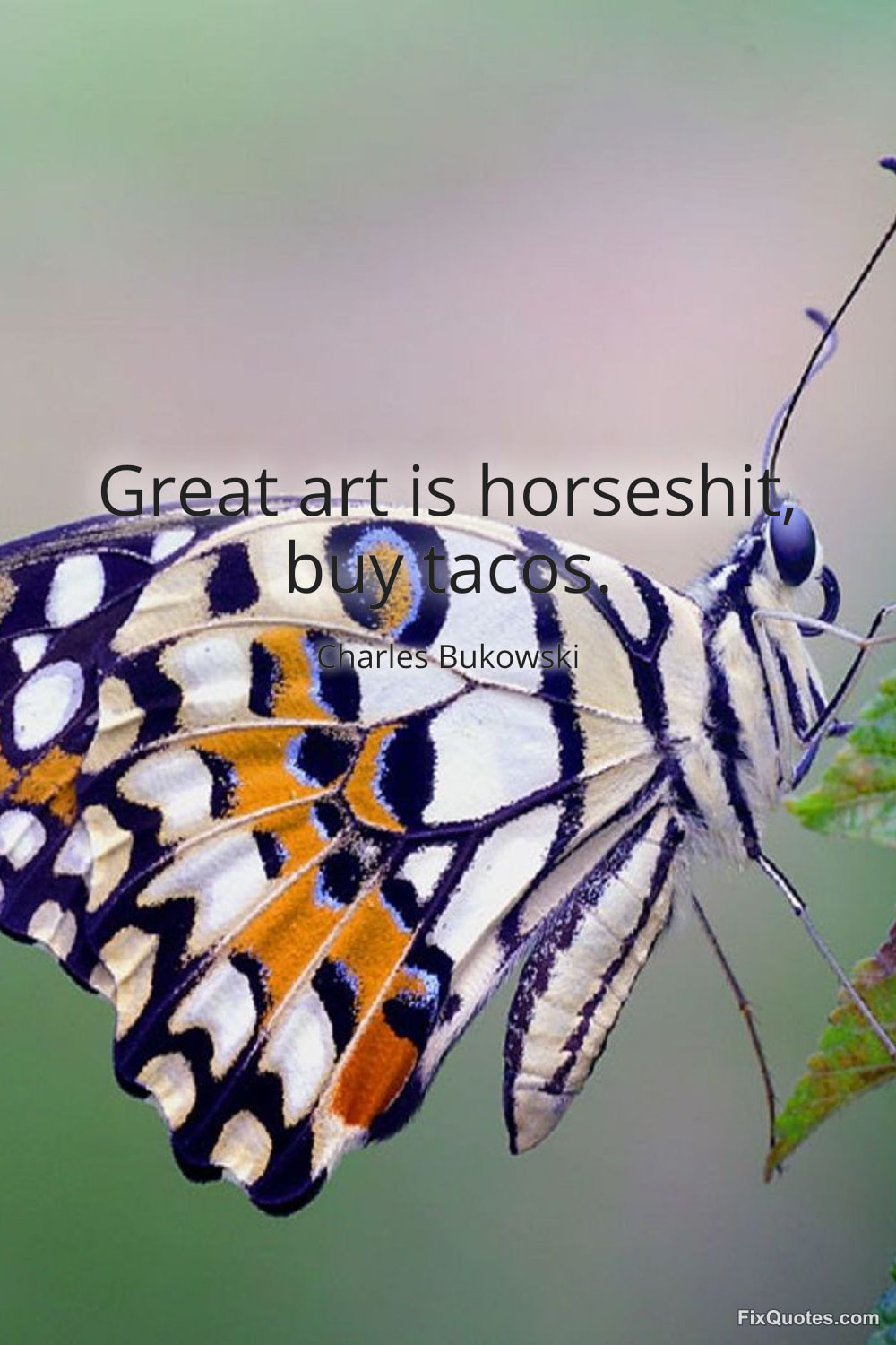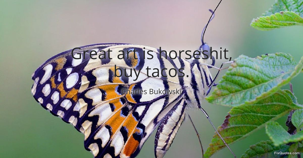 Bukowski, Charles. (2026, February 10). Great art is horseshit, buy tacos. FixQuotes. https://fixquotes.com/quotes/great-art-is-horseshit-buy-tacos-185239/