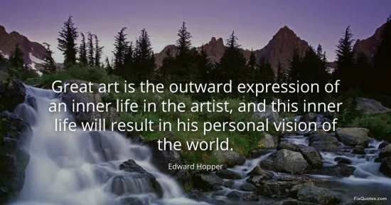 Hopper, Edward. (2026, January 16). Great art is the outward expression of an inner life in the artist, and this inner life will result in his personal vision of the world. FixQuotes. https://fixquotes.com/quotes/great-art-is-the-outward-expression-of-an-inner-114399/