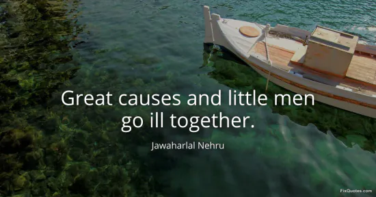 Nehru, Jawaharlal. "Great causes and little men go ill together." FixQuotes. January 15, 2026. https://fixquotes.com/quotes/great-causes-and-little-men-go-ill-together-26200/.