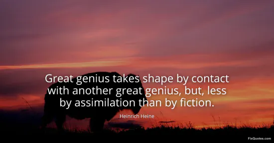 Heine, Heinrich. "Great genius takes shape by contact with another great genius, but, less by assimilation than by fiction." FixQuotes. January 18, 2026. https://fixquotes.com/quotes/great-genius-takes-shape-by-contact-with-another-8042/.