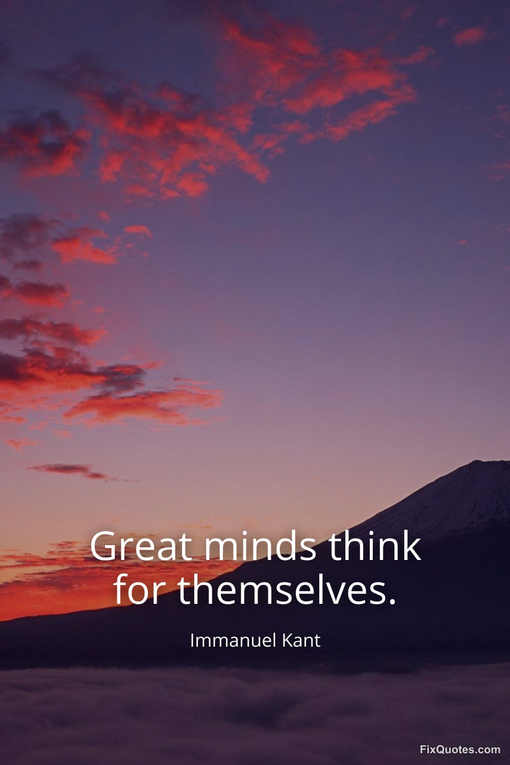 Kant, Immanuel. (2026, February 10). Great minds think for themselves. FixQuotes. https://fixquotes.com/quotes/great-minds-think-for-themselves-185069/