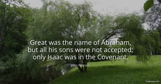 Pearson, John. "Great was the name of Abraham, but all his sons were not accepted; only Isaac was in the Covenant." FixQuotes. February 17, 2026. https://fixquotes.com/quotes/great-was-the-name-of-abraham-but-all-his-sons-106974/.
