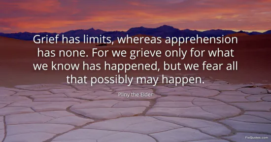 Elder, Pliny the. (2026, January 15). Grief has limits, whereas apprehension has none. For we grieve only for what we know has happened, but we fear all that possibly may happen. FixQuotes. https://fixquotes.com/quotes/grief-has-limits-whereas-apprehension-has-none-77483/