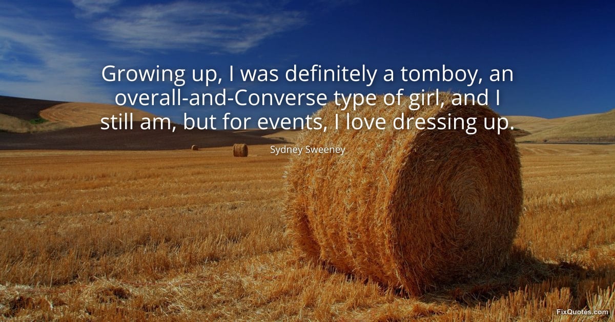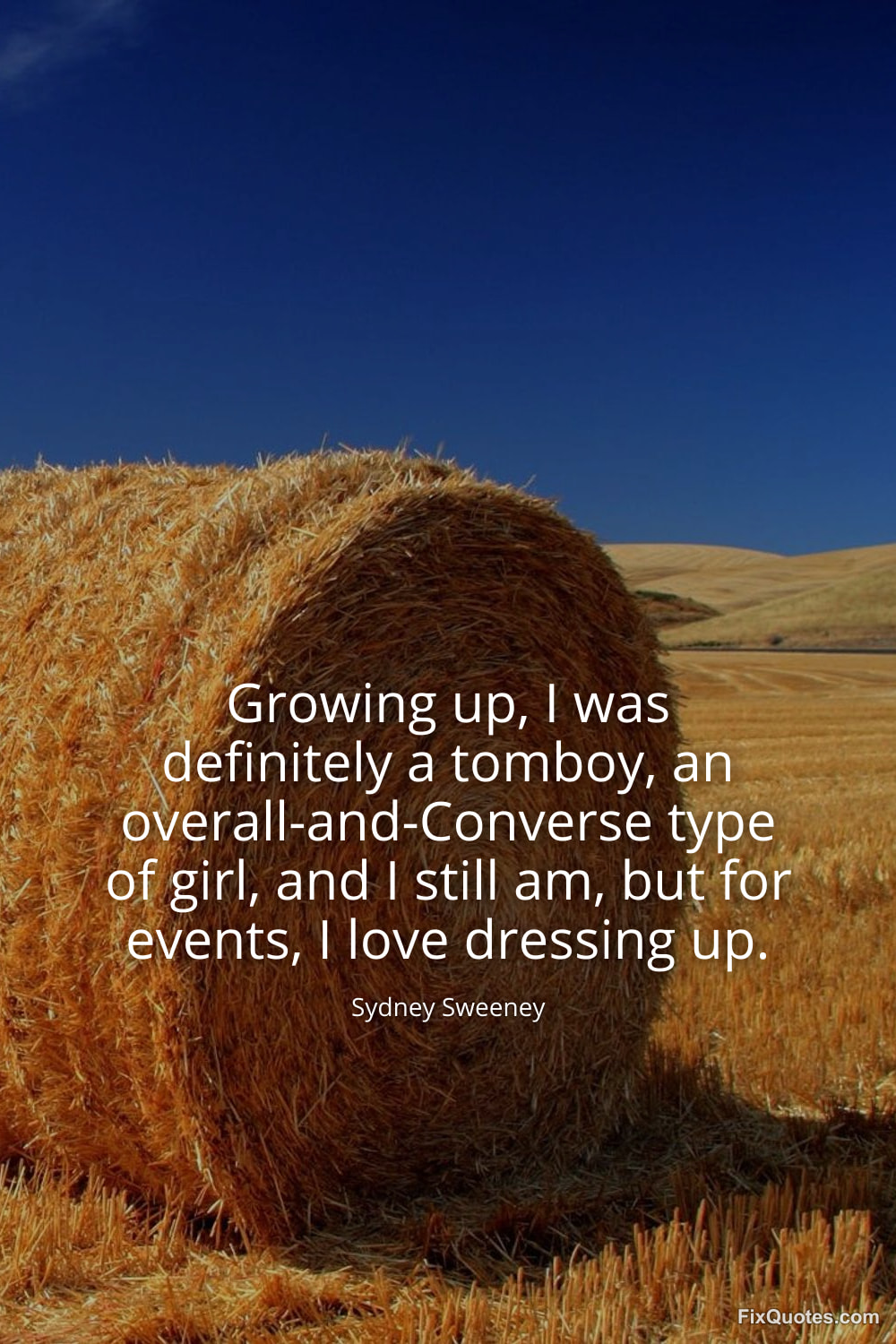 Sweeney, Sydney. (2026, January 11). Growing up, I was definitely a tomboy, an overall-and-Converse type of girl, and I still am, but for events, I love dressing up. FixQuotes. https://fixquotes.com/quotes/growing-up-i-was-definitely-a-tomboy-an-183755/