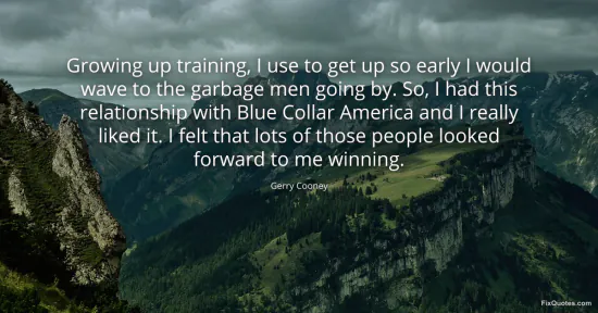 Cooney, Gerry. (2026, January 16). Growing up training, I use to get up so early I would wave to the garbage men going by. So, I had this relationship with Blue Collar America and I really liked it. I felt that lots of those people looked forward to me winning. FixQuotes. https://fixquotes.com/quotes/growing-up-training-i-use-to-get-up-so-early-i-94527/
