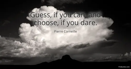 Corneille, Pierre. (2026, January 16). Guess, if you can, and choose, if you dare. FixQuotes. https://fixquotes.com/quotes/guess-if-you-can-and-choose-if-you-dare-101447/
