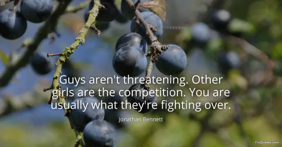 Bennett, Jonathan. "Guys aren't threatening. Other girls are the competition. You are usually what they're fighting over." FixQuotes. January 18, 2026. https://fixquotes.com/quotes/guys-arent-threatening-other-girls-are-the-15349/.