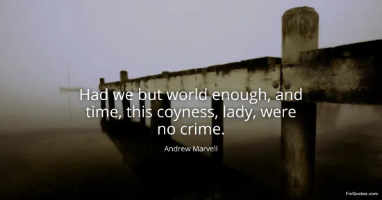 "Had we but world enough, and time, this coyness, lady, were no crime." FixQuotes, 15 Jan. 2026, https://fixquotes.com/quotes/had-we-but-world-enough-and-time-this-coyness-170671/. Accessed 12 Feb. 2026.