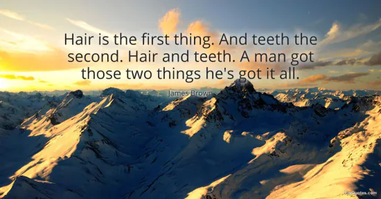 Brown, James. "Hair is the first thing. And teeth the second. Hair and teeth. A man got those two things he's got it all." FixQuotes. January 15, 2026. https://fixquotes.com/quotes/hair-is-the-first-thing-and-teeth-the-second-hair-125601/.