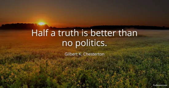 Chesterton, Gilbert K. "Half a truth is better than no politics." FixQuotes. January 17, 2026. https://fixquotes.com/quotes/half-a-truth-is-better-than-no-politics-33997/.
