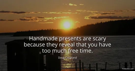 Coupland, Doug. (2026, January 17). Handmade presents are scary because they reveal that you have too much free time. FixQuotes. https://fixquotes.com/quotes/handmade-presents-are-scary-because-they-reveal-57108/