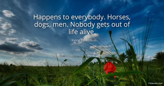 Ravetch, Irving. (2026, January 16). Happens to everybody. Horses, dogs, men. Nobody gets out of life alive. FixQuotes. https://fixquotes.com/quotes/happens-to-everybody-horses-dogs-men-nobody-gets-136844/