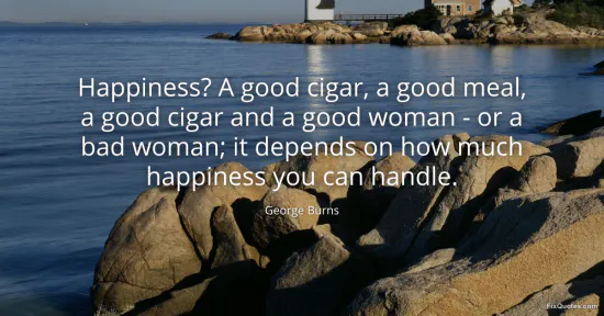 | Source | George Burns — quotation commonly attributed; listed on Wikiquote (entry: "Happiness? A good cigar, a good meal, a good woman — or a bad woman; it depends on how much happiness you can handle"). |