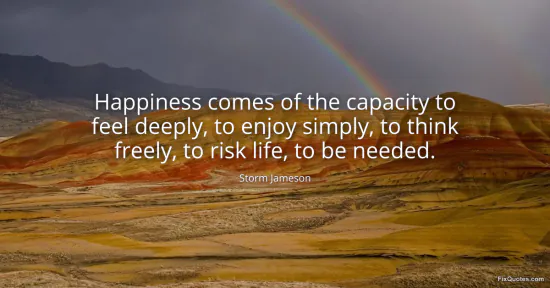 Jameson, Storm. "Happiness comes of the capacity to feel deeply, to enjoy simply, to think freely, to risk life, to be needed." FixQuotes. January 15, 2026. https://fixquotes.com/quotes/happiness-comes-of-the-capacity-to-feel-deeply-to-169723/.