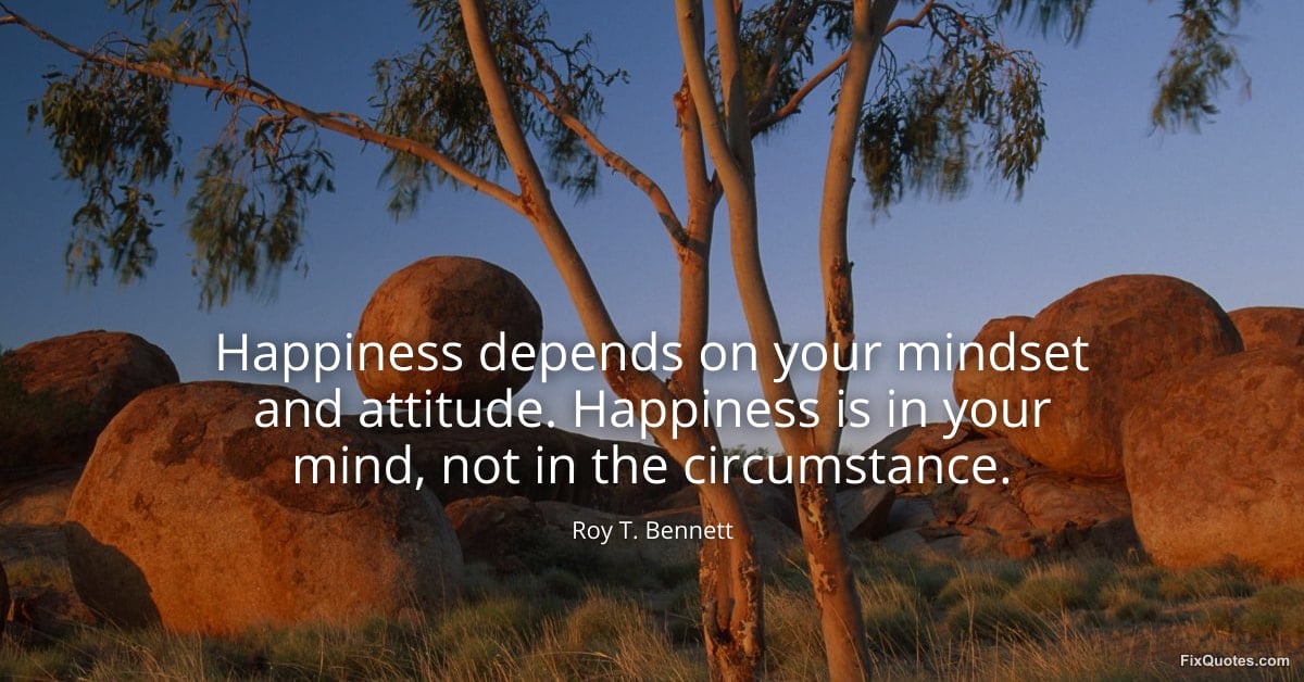 Bennett, Roy T. "Happiness depends on your mindset and attitude. Happiness is in your mind, not in the circumstance." FixQuotes. January 11, 2026. https://fixquotes.com/quotes/happiness-depends-on-your-mindset-and-attitude-183812/.